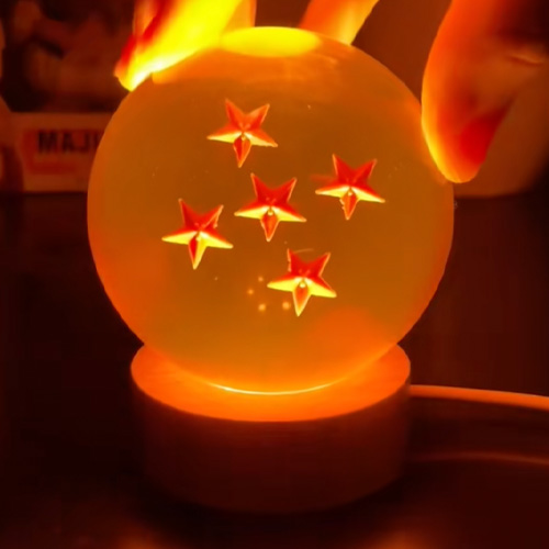 Lampara redonda estilo Esfera del dragón con 4 estrellas, se alimenta con cargador de cualquier celular, incluye el cable USB articulado, Para mayor inf contactanos.